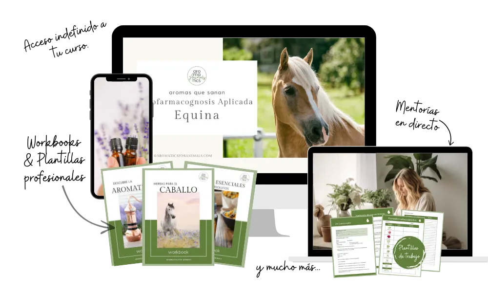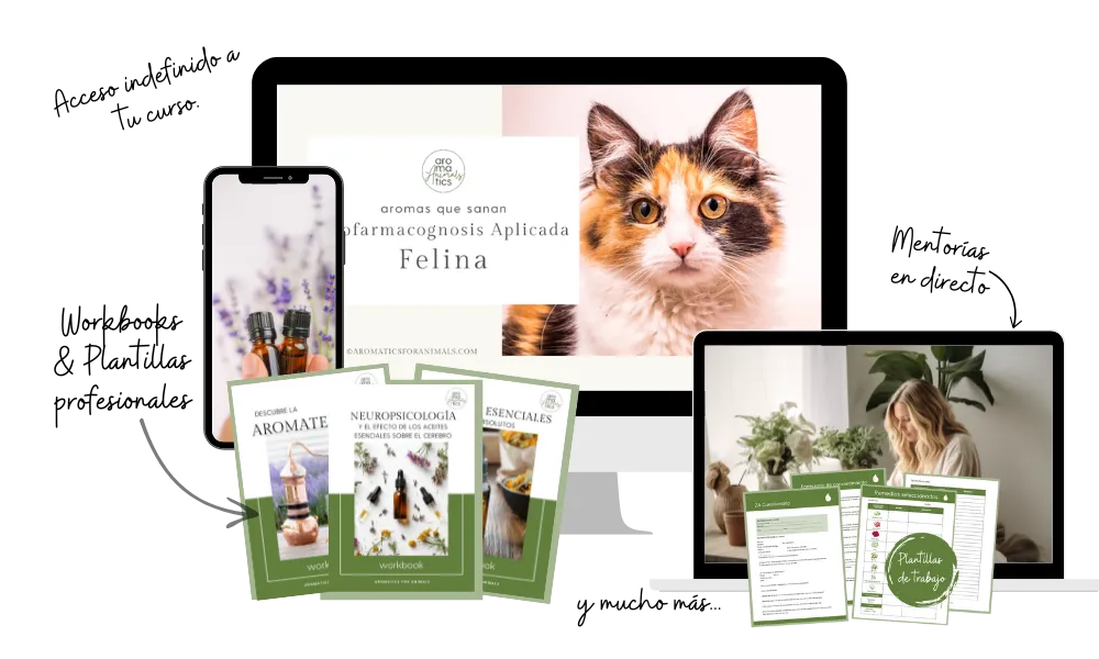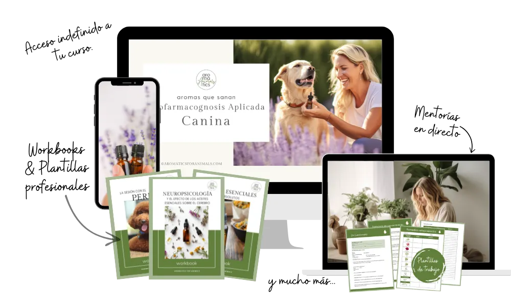 A través de mis cursos, combino ciencia, sensibilidad y años de experiencia para mostrarte cómo los aceites esenciales, las hierbas y otros remedios naturales pueden convertirse en aliados poderosos cuando el animal tiene la libertad de elegirlos.