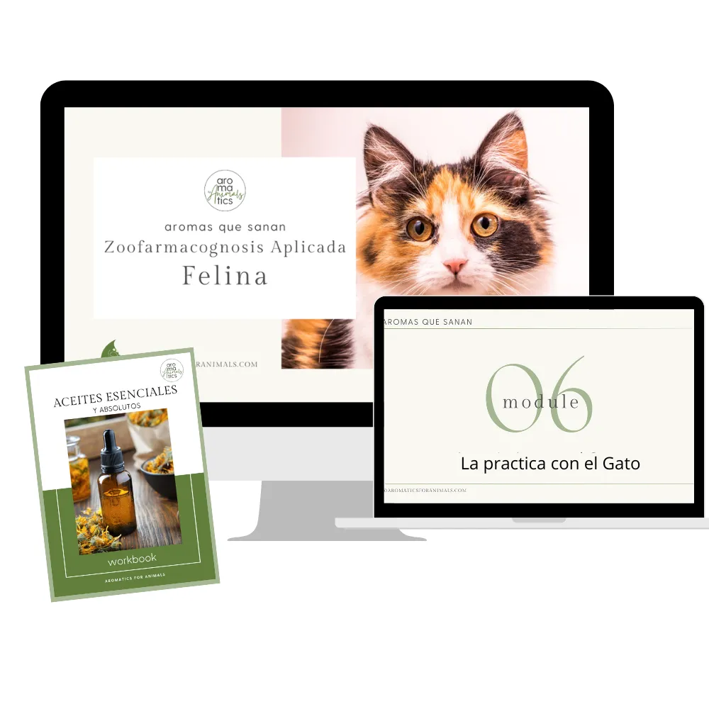 En el curso encontrarás un curso básico de aromaterapia que te enseñará todo lo que necesitas saber para poder ofrecer los aceites esenciales con total seguridad a los animales.